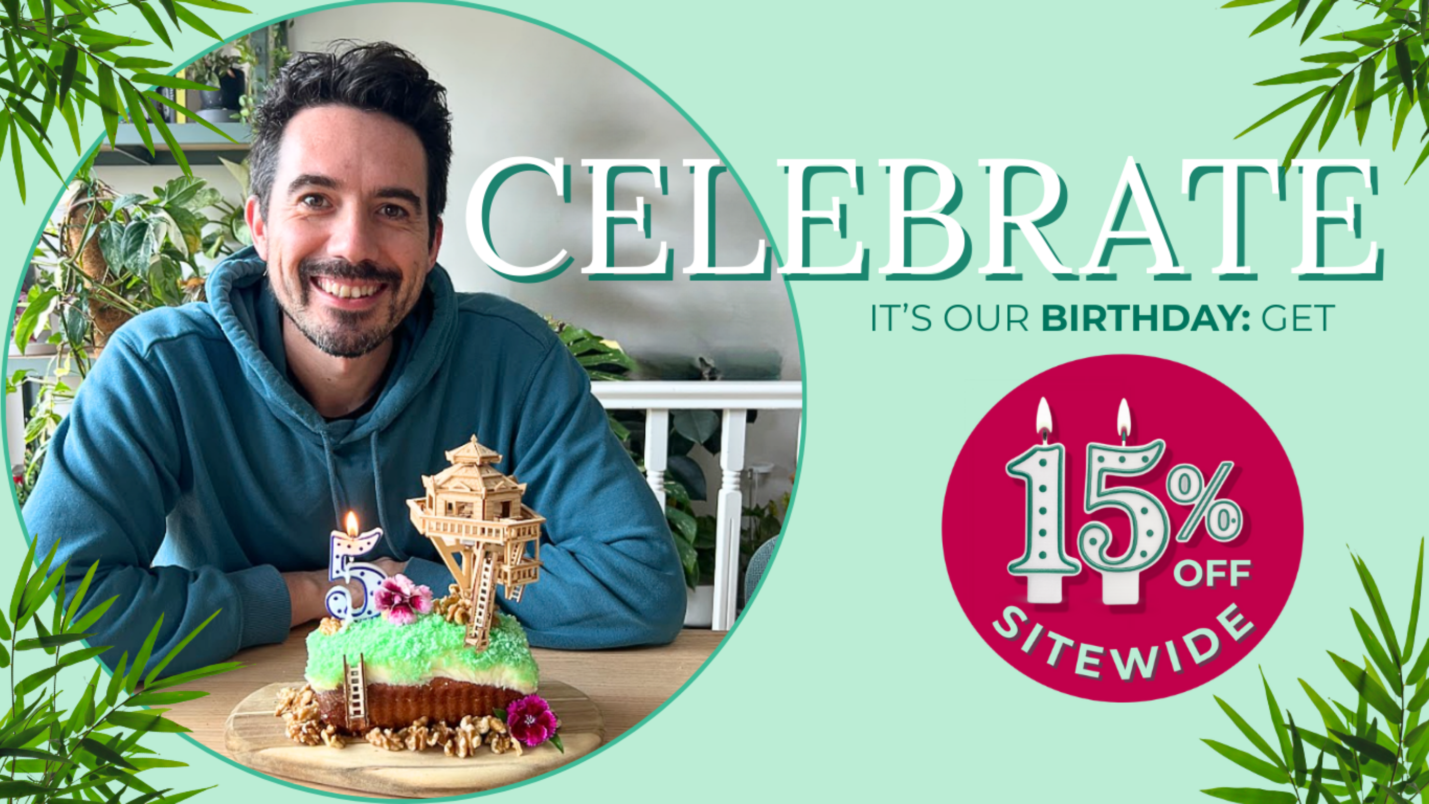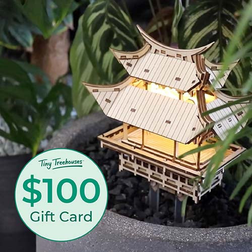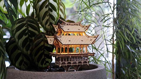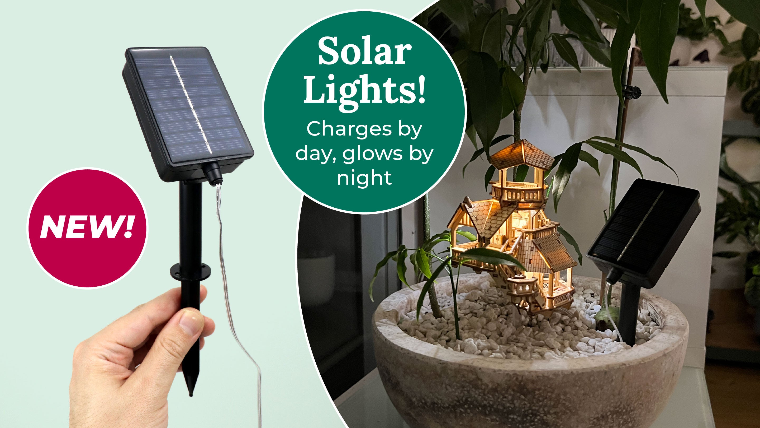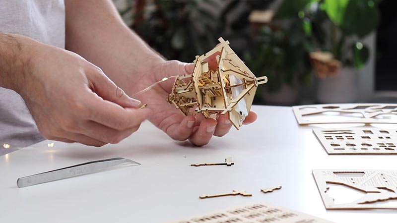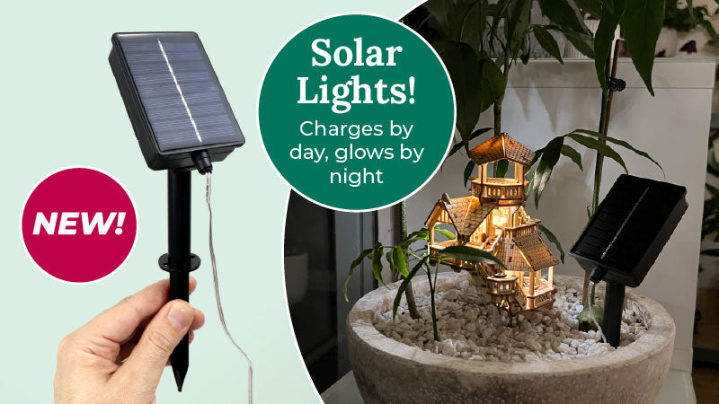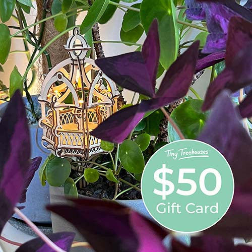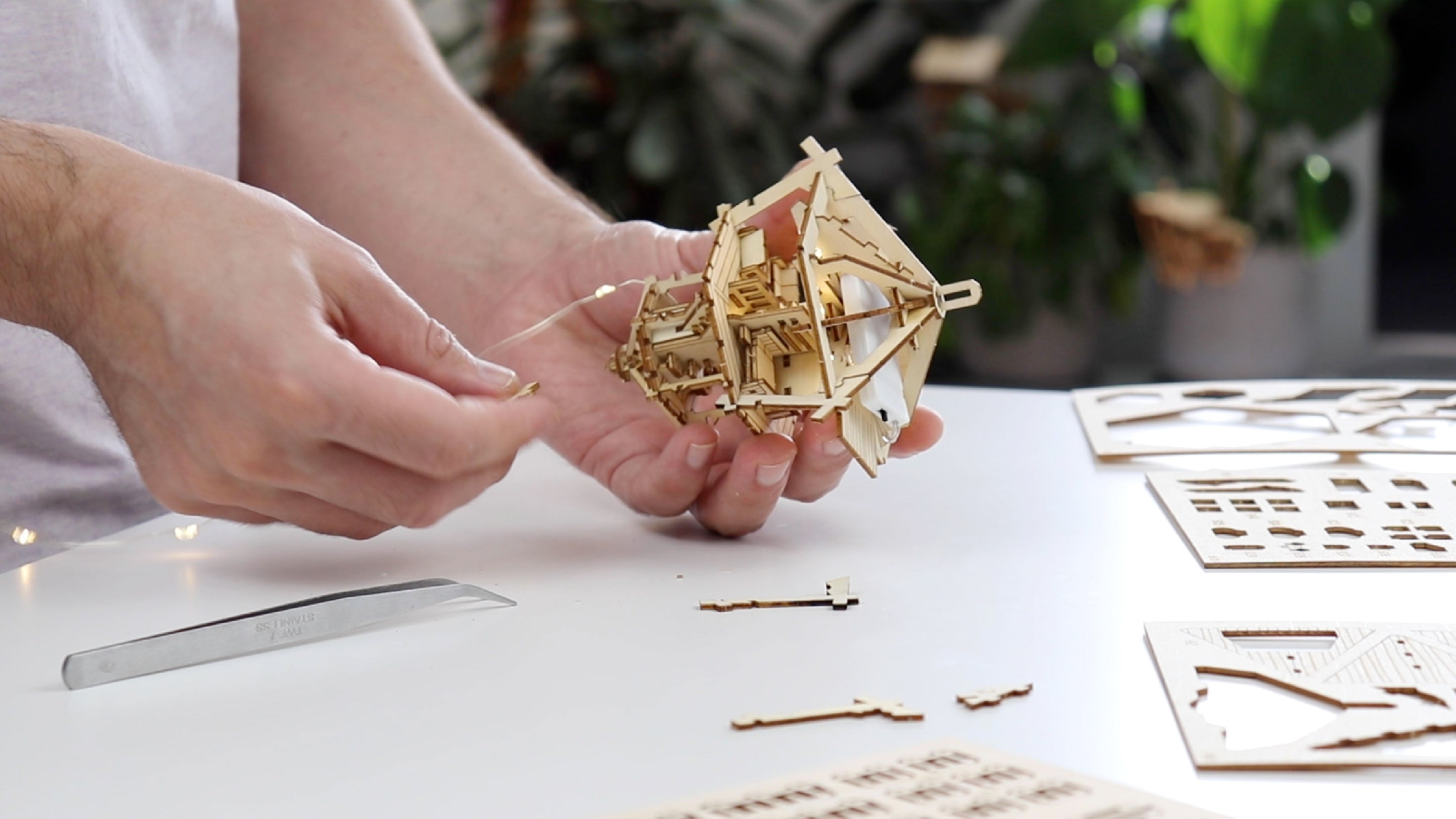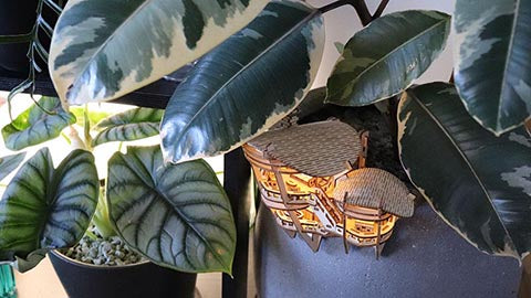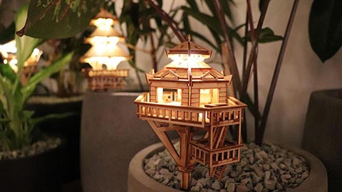Every 3D puzzle comes with battery operated LED lights to give your Tiny Treehouse and plants a warm and magical glow.